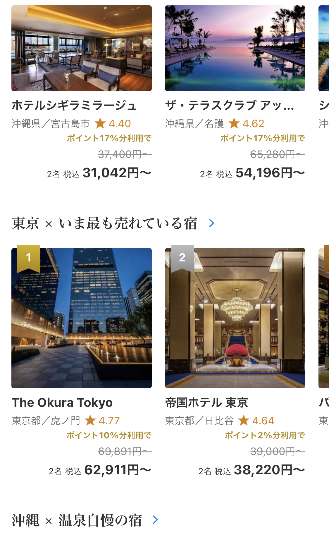 1泊2日で両親と自分の3人で大体7万円位を予算に考えて探してみました。